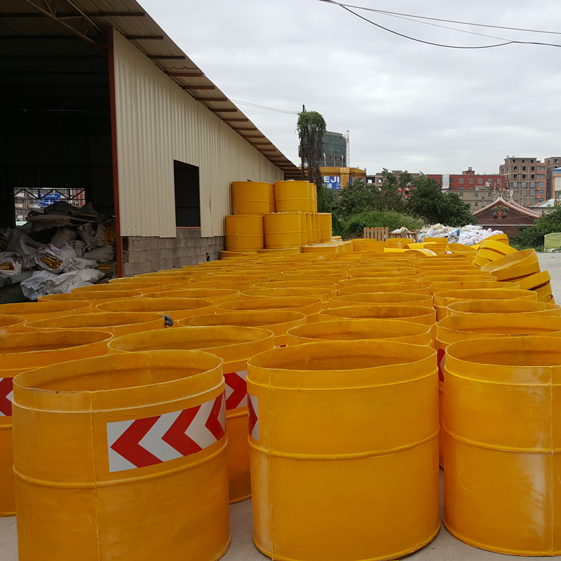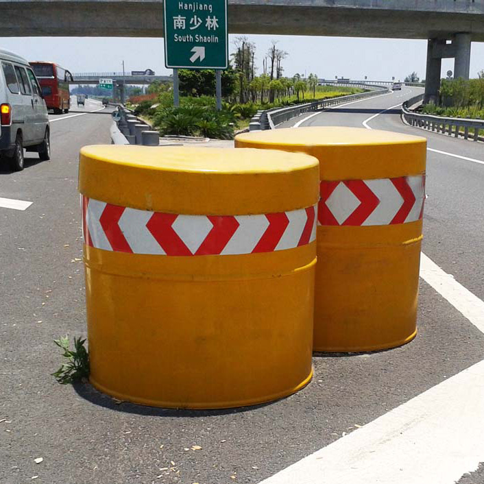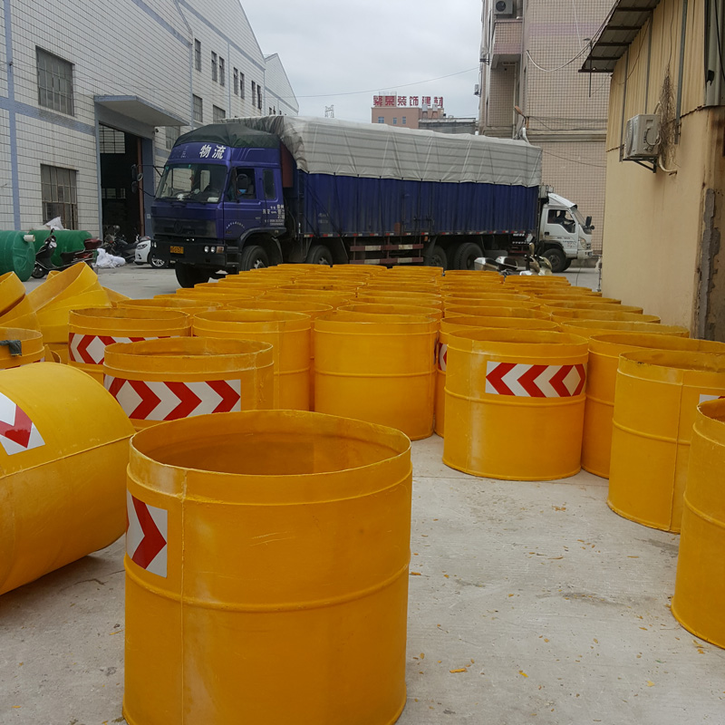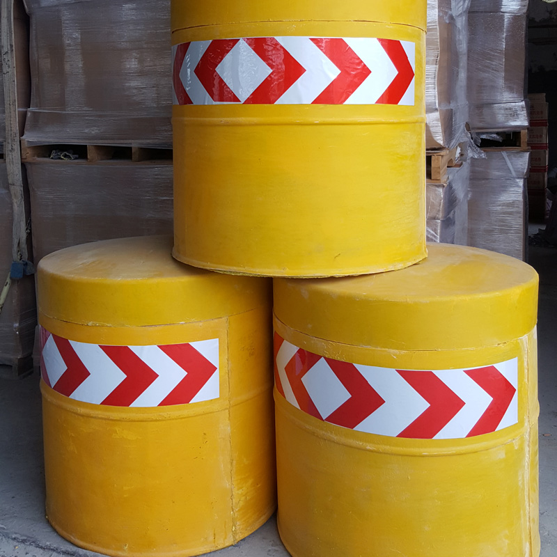 璃鋼防撞桶主要設(shè)置在公路及城市道路上容易發(fā)生汽車與路中固定設(shè)施發(fā)生碰撞的部位,如:路的轉(zhuǎn)彎處,路中崗?fù)ぁ⑹召M(fèi)站及高架路的進(jìn)出口,停車場、小區(qū)、花園、加油站等等,起到隔離作用,防撞桶是用高彈性、高強(qiáng)度的改性塑料制成,當(dāng)汽車與該設(shè)備碰撞時(shí),能有效地減小沖擊力,因此,能顯著地降低車與人地?fù)p傷。 其表面貼有的反光膜,可以根據(jù)需要貼上指示標(biāo)簽.