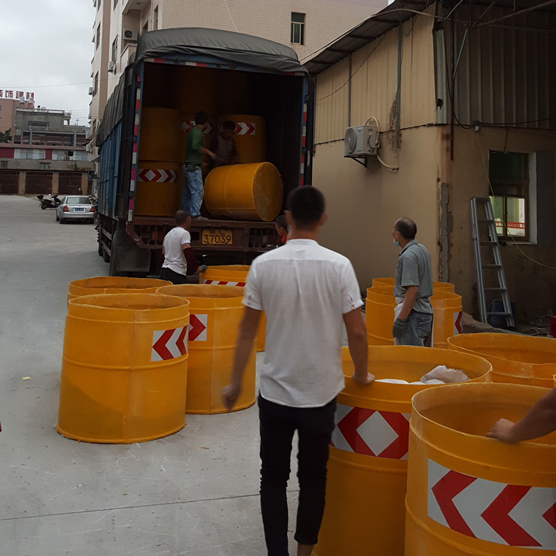 1. 防撞桶中空灌沙水,具有緩沖彈性,能有效吸收強(qiáng)大撞擊力,降低交通事故程度;組合使用,整體承受力更強(qiáng),更加穩(wěn)固